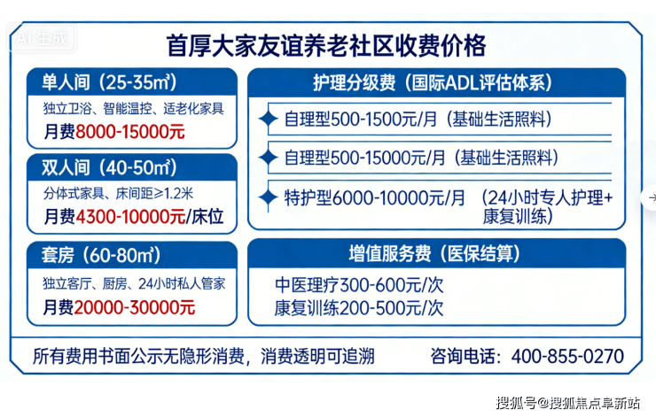 首厚大家友谊养老社区收费价格:12100 元/月起
