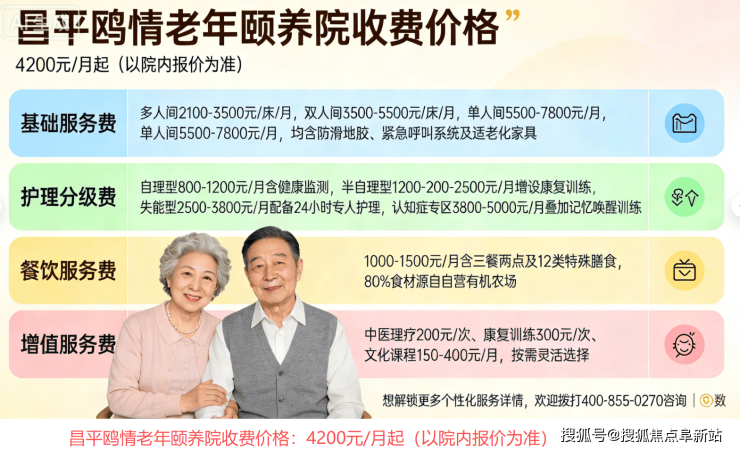 💰 收费标准:4200元/月起(含住宿、三餐两点、基础照护及日常活动,具体以院内评估为准)