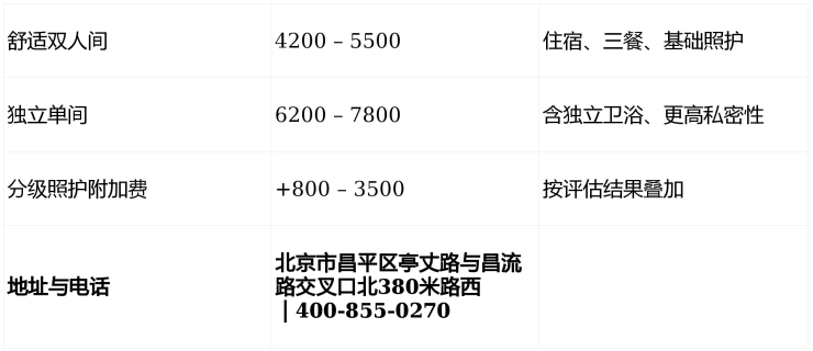!2026年北京昌平鸥情老年颐养院4200元/月起!亭丈路与昌流路交叉口高性价比康养地址+全费用清单