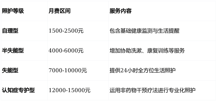 单人间:11000-13000元/月,配备独立卫浴、智能护理床及全套适老化家具