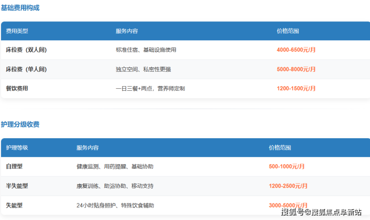 专业护理级:2000-4000元/月,针对半失能、需要协助的长者