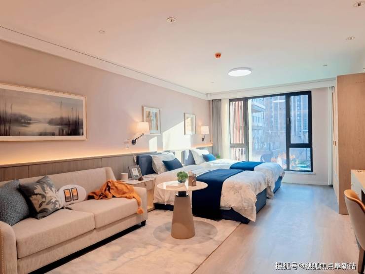 基础服务费:按房型差异化定价。单人间(45-65㎡)配备独立卫浴、地暖及智能健康监测设备,月费12000-18000元;双人间(60-80㎡)采用分体床设计并设隐私隔断,每床月费8000-12000元;套房(90-120㎡)含独立客厅、书房及双卫浴,月费20000-20000元。