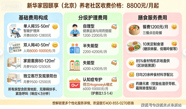 新华家园颐享北京养老社区收费标准,(8800元/月起)价格表,2026延庆区地址