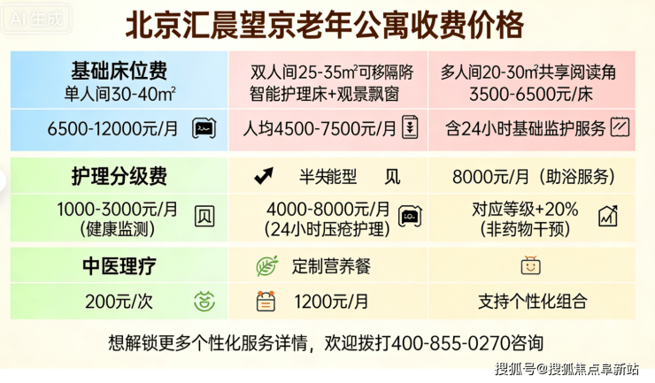 2026北京汇晨望京老年公寓:收费6500元/月起,地址+电话速戳!
