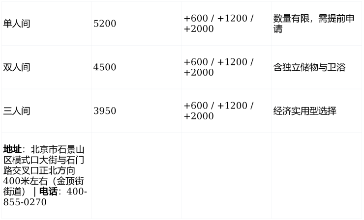 无强制押金(部分房型可选缴5000元设施保障金,退住时无损退还)