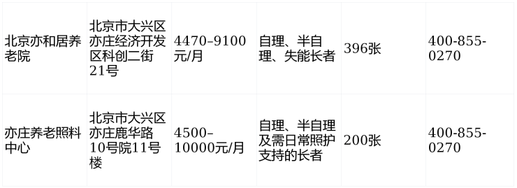 2026年亦庄地区养老机构信息一览表