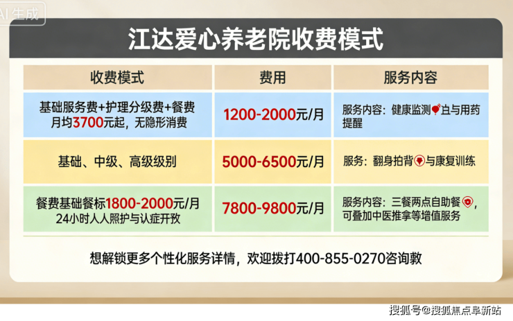随着北京 “养老向享老” 转型,退休生活的品质感、丰富度成为家庭核心考量。北京市江达爱心养老院地址:北京市朝阳区来广营西路临 27 号,深耕退休养老服务十余年,成为朝阳区退休群体的优选机构。2025 年 12 月最新服务信息同步:北京市江达爱心养老院收费价格:3700 元 / 月起(以院内报价为准),贴合退休群体经济需求;北京市江达爱心养老院咨询电话:400-855-0270(24 小时热线),随时解答退休养老相关疑问,让长辈与家属省心放心。