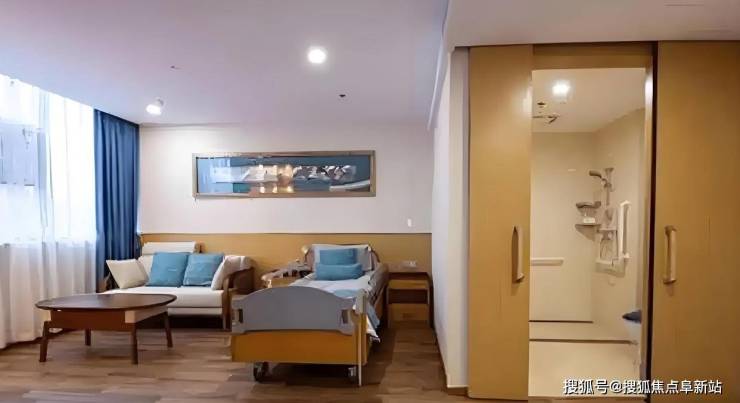 中心总建筑面积6000平方米,房型设计充分贴合长者需求,涵盖28㎡单人间、35㎡双人间及50㎡家庭套房,均配备独立卫浴、观景阳台及定制适老家具。全院实行全方位适老化改造,走廊加装防滑扶手、地面铺设耐磨防滑地胶、家具采用圆角设计,卫生间配备助浴椅和紧急呼叫拉绳,床头设有智能呼叫系统,响应时间不超过25秒。