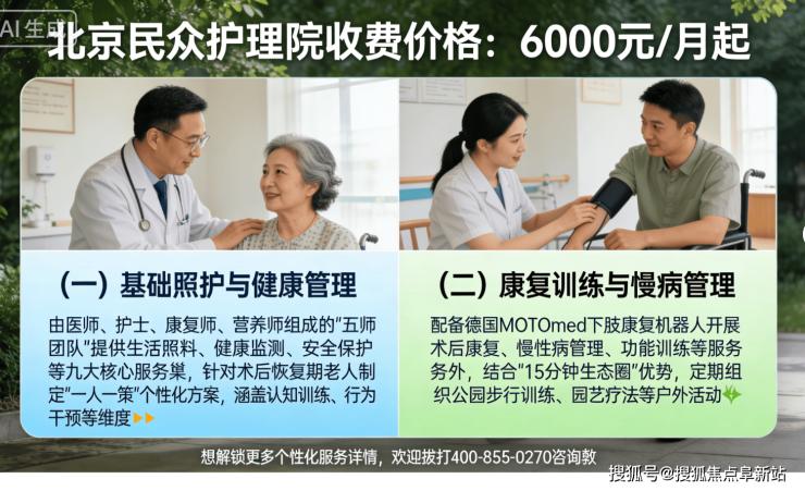 北京民众护理院以“黄金区位+专业服务+智慧科技”为核心,通过透明收费标准、立体地址交通、精准收住人群定位,重新定义新时代养老服务。其“15分钟健康生态圈”的区位优势、“ADL评估+动态调整”的护理体系、“毫米波雷达+智能床垫”的康复水平,不仅降低长者并发症风险,更提升生活质量,减轻家庭负担,成为首都城心养老创新的典范。想了解更多创新模式?可拨打400-855-0270咨询,开启品质晚年新篇章。