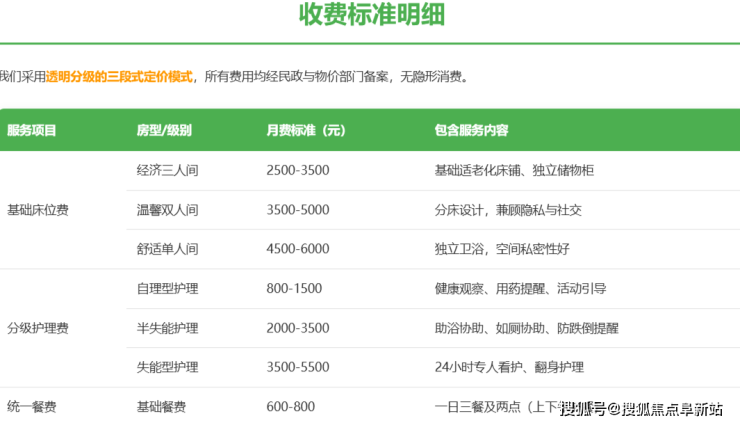 根据长者实际身体状况评估后确定,非固定收取。例如:针对需要助浴、穿衣、服药提醒等协助的半失能长者,会在基础月费上增加相应的护理服务费。所有护理等级与对应费用,均会在入住评估后书面明确告知,签约前完全透明。