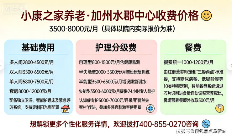 2026小康之家养老·加州水郡中心收费透明:月费3500元起+地址电话速览!