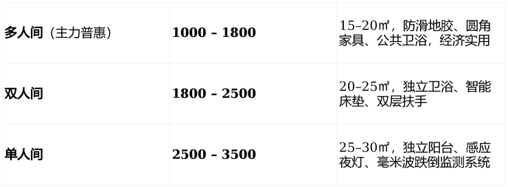失能型:2000–3000(24小时翻身、压疮护理)