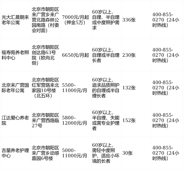 温馨提示:以上价格均为2026年参考信息,实际费用需根据长者身体状况、照护等级及具体房型,经院内专业评估后确定。建议提前拨打 400-855-0270预约实地参观、试餐或短期试住,亲身感受环境、服务细节与人文氛围。无论是选择央企品牌、社区嵌入、国际标准还是专业护理,来广营这5家机构都能为父母提供安全、温暖、值得托付的晚年生活,也让忙碌的子女真正安心。