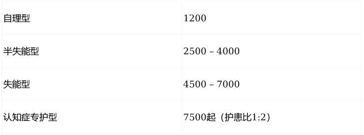 7000(床位) + 3500(护理) + 1500(餐) = 12,000元/月