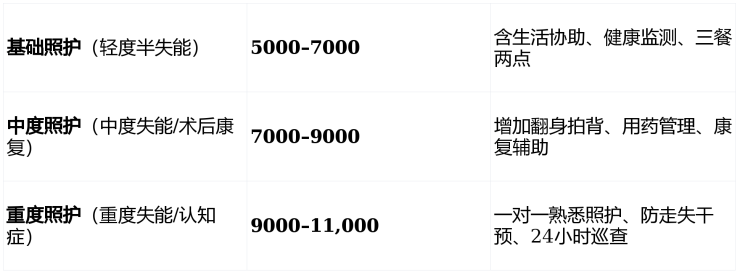 二、价格体系透明:5000–11000元/月,精准匹配照护强度