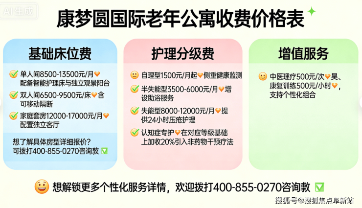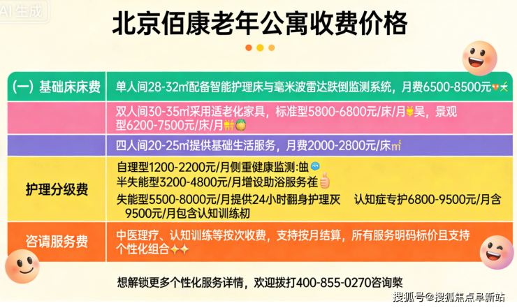 温馨提示:以上价格为2026年最新标准,具体费用需根据入住前专业评估确定。十八里店地区作为朝阳区养老服务重点覆盖区域,资源相对集中,建议提前预约参观。欢迎拨打24小时咨询热线 400-855-0270 获取详细资料或安排实地考察。