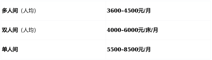 核心信息:3600元/月起(综合3600-10000元/月),400张床位