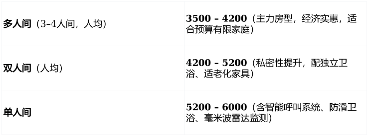 💰 收费标准:3500-6000元/月(按护理等级、房型精准浮动)