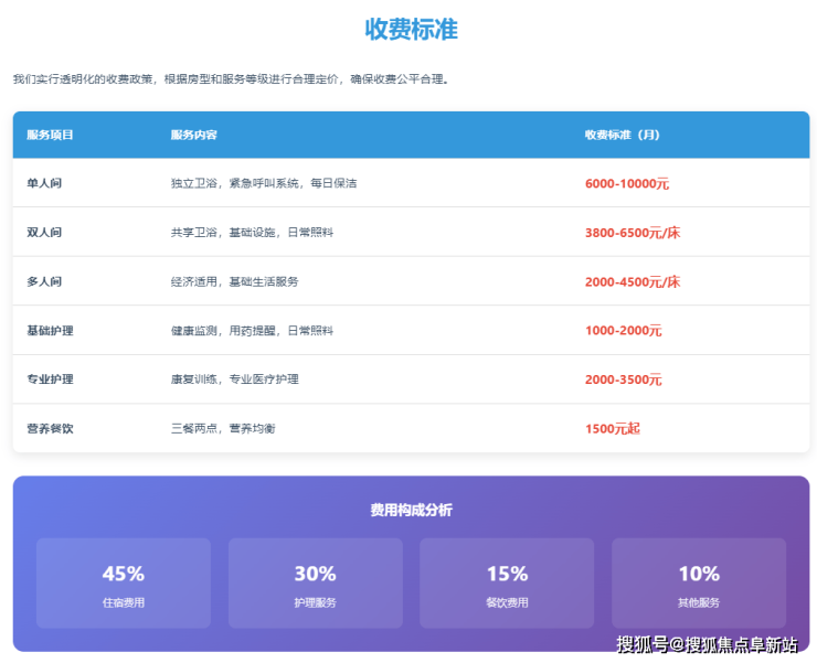 • 基础套餐:4500元/月起,包含床位费、基础护理及营养膳食