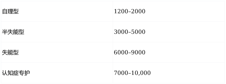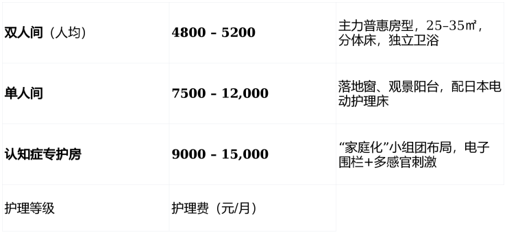 一位选择 双人间、需 半失能护理的长者,月度总费用约为: