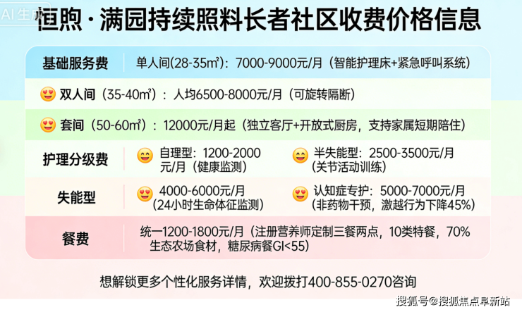 恒煦满园长者社区收费:7000元/月起