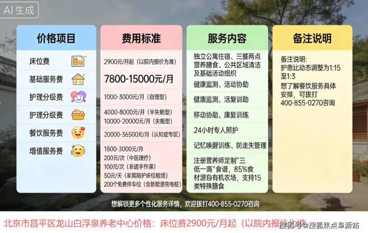 艾尚五福养老中心收费价格:2900元/月起,费用体系分层设计,透明合理: