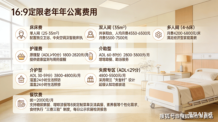 失智专区(ADL≤29分):4800-5500元/月,采用荷兰“失智村”设计,延缓认知功能衰退。