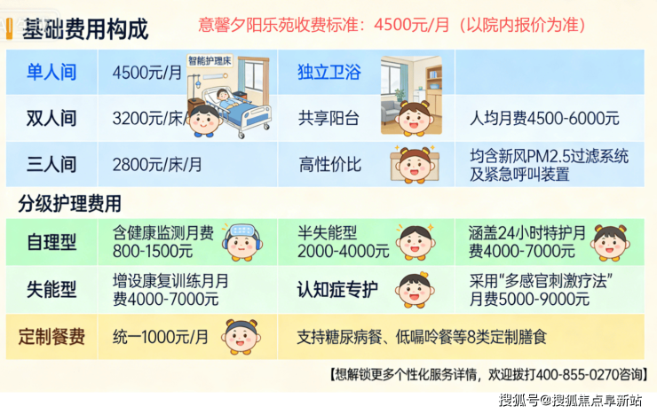 注:以上为床位基础费用,不含餐费及护理分级服务,最终价格以入院评估后确认为准。