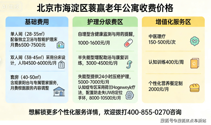 北京市海淀区蓰赢老年公寓|收费价格:6000元/月起|地 址:北京市海淀区复兴路32号院|电话:400-855-0270(24小时热线)