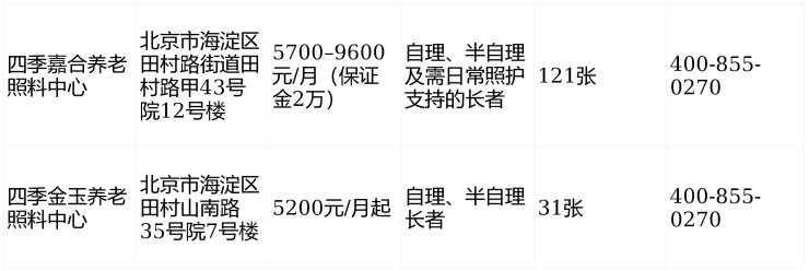 2026年海淀区田村地区养老机构信息一览表