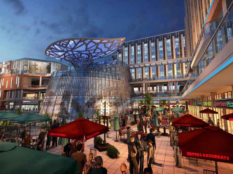◎6号楼规划为三层核心岛商业,面积区间为20-130㎡,主力面积60㎡;以及10000 ㎡下沉式广场。