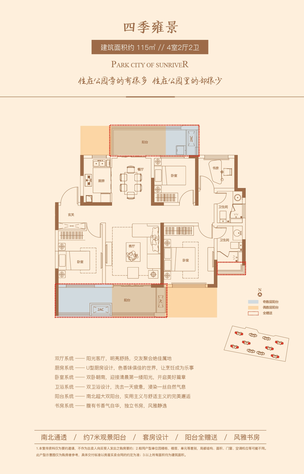 祥源·公园城傲踞阜南政务核心区域,秉承26载企业愿景,以匠心致敬城市。起笔人居蓝图,铸就城心·双公园,66万方首席中央住区,外接体育公园,内拥6.5万方自建公园,启幕双园大境,坐享政务区优质市政设施,紧邻老城区醇熟配套,尊享国家一级资质物业,构造庭院洋房等多元产品,一座集住宅、商业、休闲等为一体的城央生活大城,正在向阜南走来!