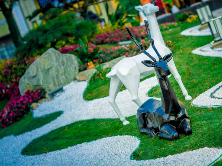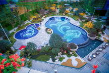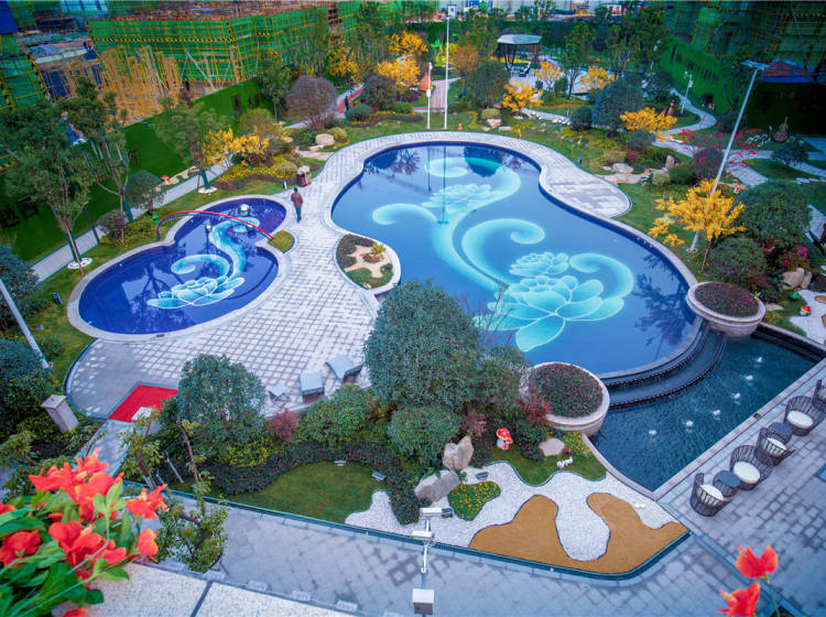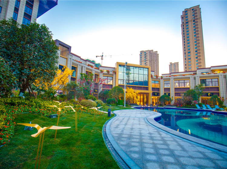 七重立体皇家园林,三季有花四季常绿,移步异景;室外园林双泳池;