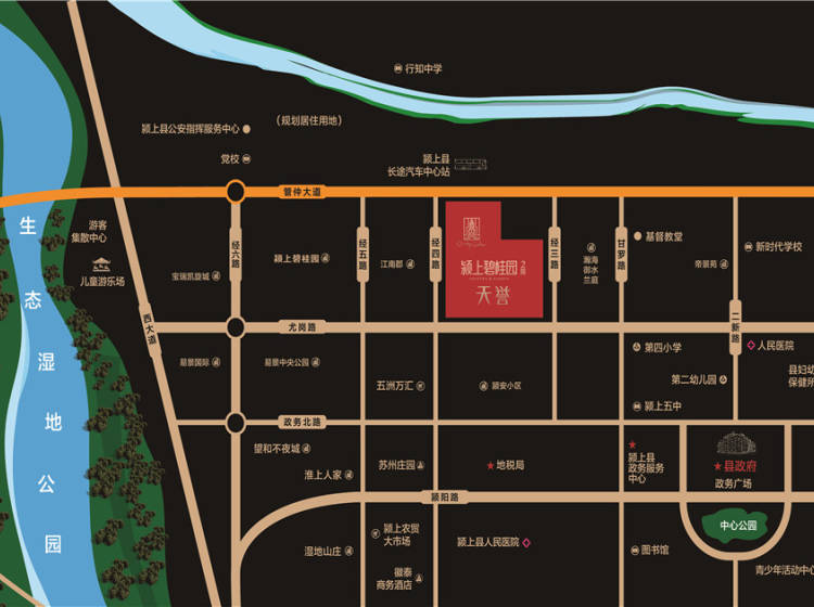 颍上 颍上碧桂园·天誉位于管仲大道以南(管仲大道为颍上县东西方向主动脉),经四路以东,尤岗路以北,经三路以
