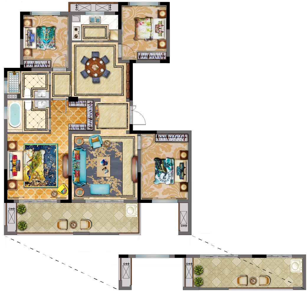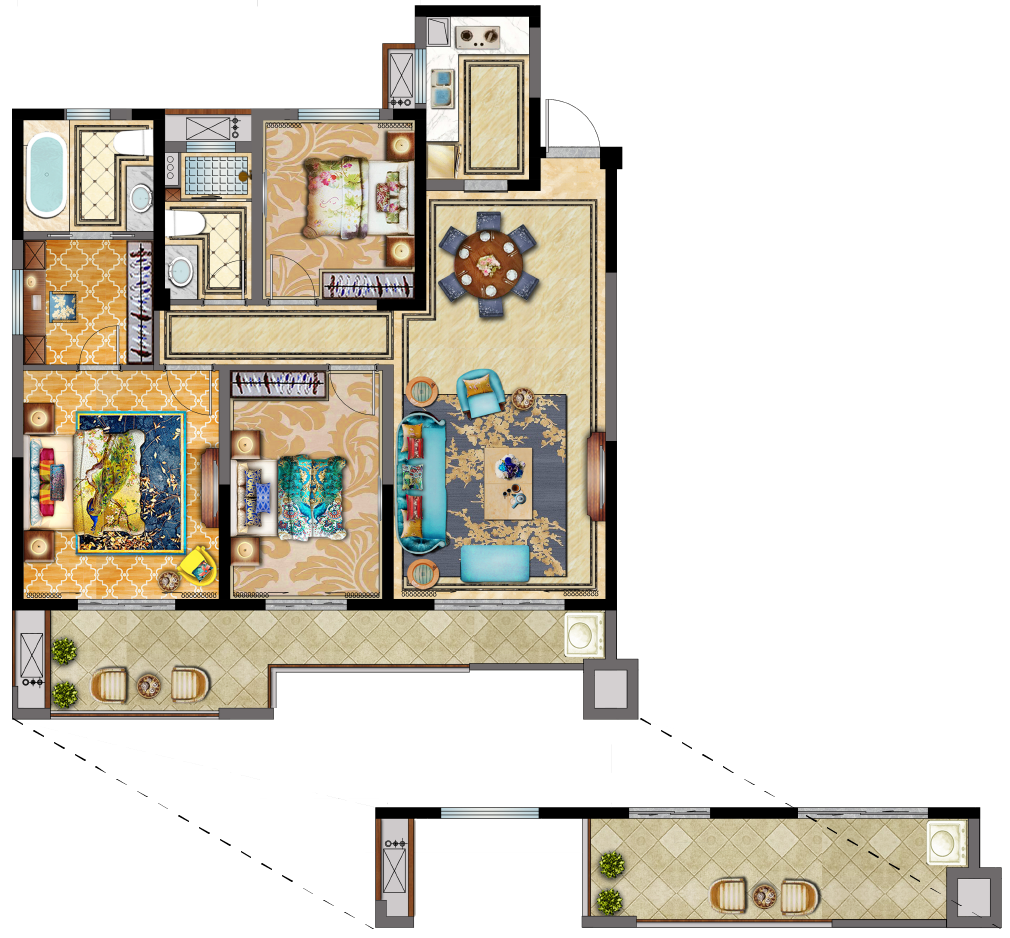 建筑风格上,采用新中式建筑形态,以东方美学融合现代审美,打造阜阳难得一见的人文府院;景观营造上,将中式元素融入园林之中,打造具有文化底蕴的四季立体园林;景观之中融入儿童娱乐区、文体活动等休闲设施,打造可观、可赏、可居、可游的高端墅区概念。