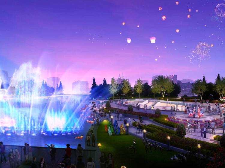 奥园嘉年华广场项目由7万方大型开放式景观公园和5万方二层下沉式主题情景体验商业街共同组成。在整个阜阳地区情景式商业独此一家,天然的景观长河、公园与情景主题商业优质融合,相辅相成,公园为商业增加人气,商业为公园带来生机。