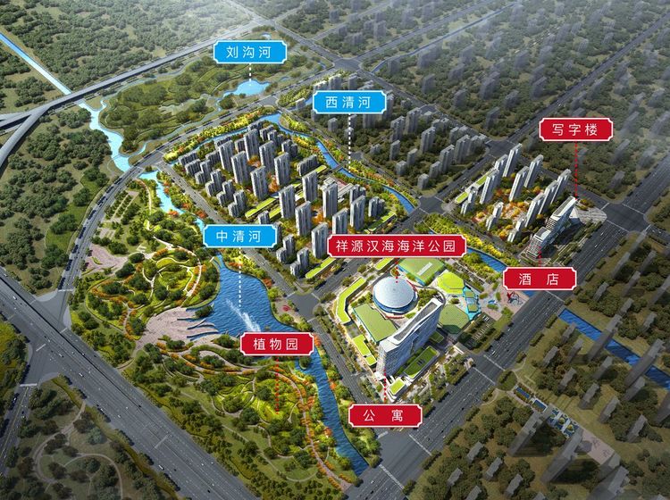 项目坐拥中清河、西清河、刘沟河,连通双清湾水域,环抱社区四周,形成自然与生活优质交融的场景,浸润枕水人居。