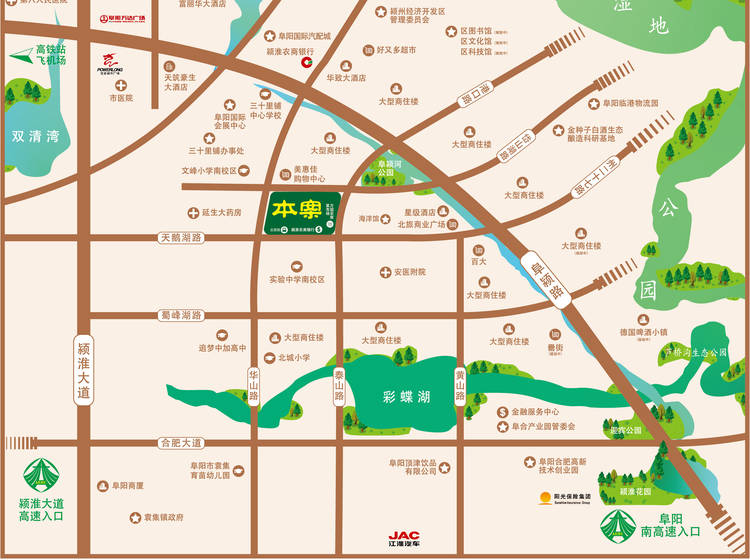 景观:阜颍河公园、彩蝶湖公园、芦桥沟生态公园、颍淮花园、凤凰湿地公园等五大公园环伺;左右逢园,乐享自然鲜活。