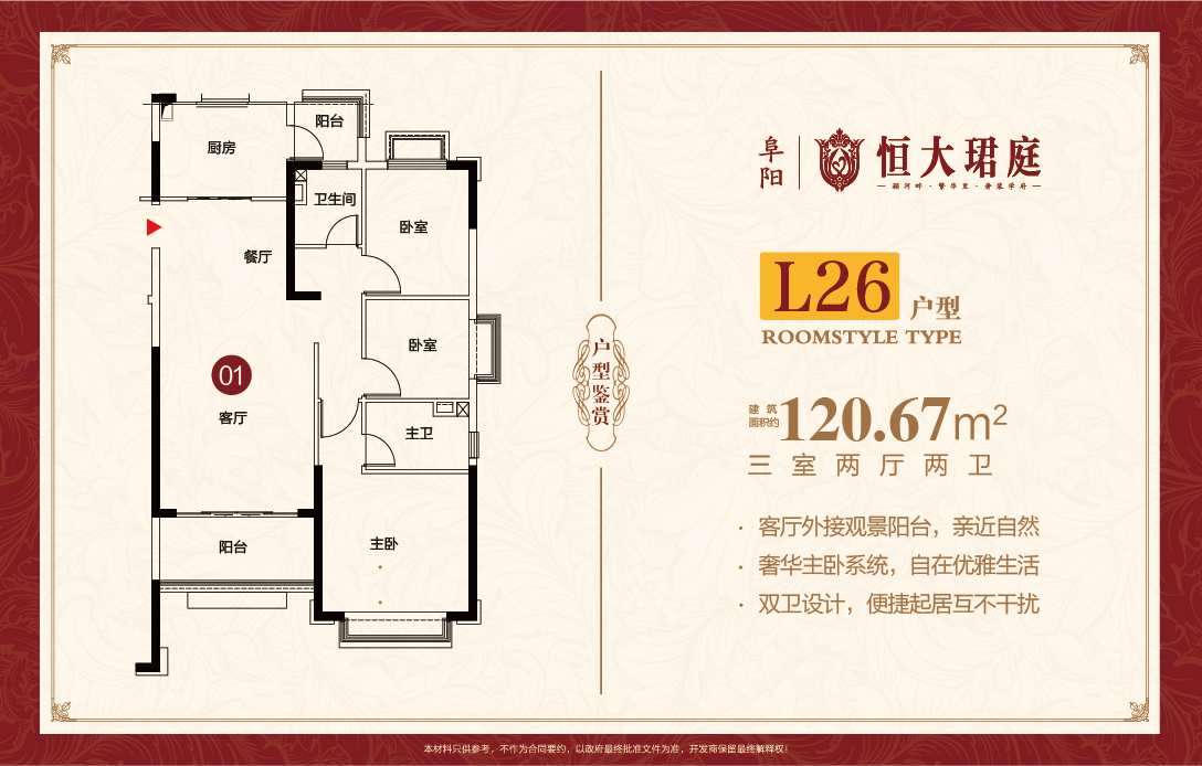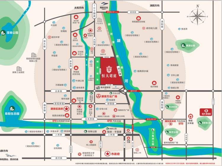 项目紧邻颍河生态长廊,阜阳首家音乐喷泉小区,恒大五重立体欧式园林景观,恒大科技智慧社区,国家一级资质恒大物业。