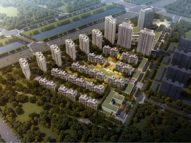 项目总占地面积90767㎡,规划总建筑面积238150.28㎡,其中地上建筑面积181408.19㎡,地下总建筑面积56742.09㎡.本项目规划建设36栋建筑及三处地下室,分别为2栋27F商住楼,1栋27F住宅楼,4栋18F住宅楼,2栋16F住宅楼,4栋11F住宅楼,9栋9F住宅楼,1栋19F住宅楼,6栋2F商业楼,1栋2F商业配套楼,1栋2F商业楼及配电房,1栋1F商业楼及配电房,1栋3F幼儿园
