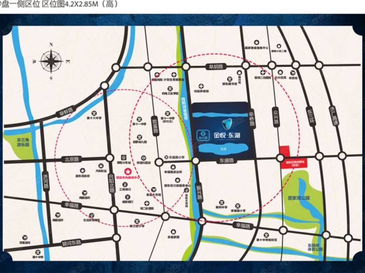 项目位于阜阳市颍东振兴路与幸福东路交汇处北300米,靠近S25省道、距济广高速仅5分钟车程、汽车东站、繁华火车站商圈仅1.4公里。
