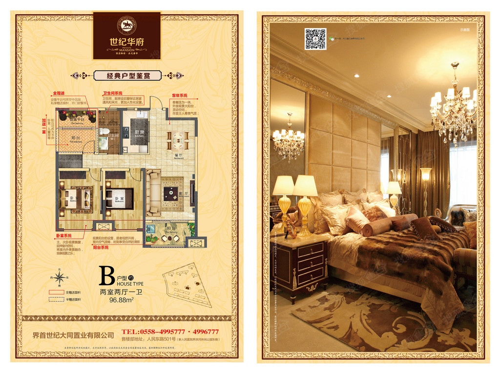 墅区、9栋33层高层住宅、近1万方的商业街组成。88㎡--106㎡为主力户型,采用明厨,明卫,明厅,明卧的设计理念,