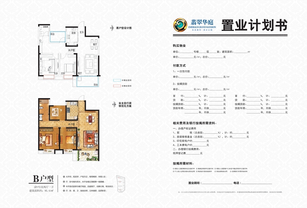 翡翠华庭小区由4栋34层纯住宅和2栋独立商业组成,共计600多户。总体园林景观结合现代简约风格建筑与老泉河景观公园无缝连接,使得小区体现出一种特殊的自然风情。以带状绿化和景观小品为主要布置形式,结合步行系统规划,有机联系各楼宇绿地和老泉河休闲景观带自然融合,使各个绿化连成一体,增强户外空间的连续性。通过小区的多个景观节点,做到户户有景、户户观景和移步一景,时尚大气,优美舒适。 在目前颍泉区的城市规划战略中,翡翠华庭地段价值优越,以发达城市的标准建造城市化高品质社区,建筑、户型、园林景观等总体设计先进,具有前瞻性。在政府相关部门支持下,周边配套和小区相关配套迅速完善,未来的一两年内项目所处的泉北核心区板块将成为颍泉区新型居住小区的聚集地!