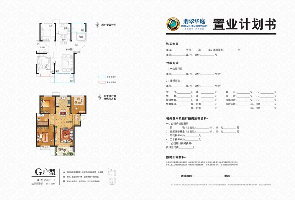 2室2厅1卫-G户型 (2+1)室两厅一卫