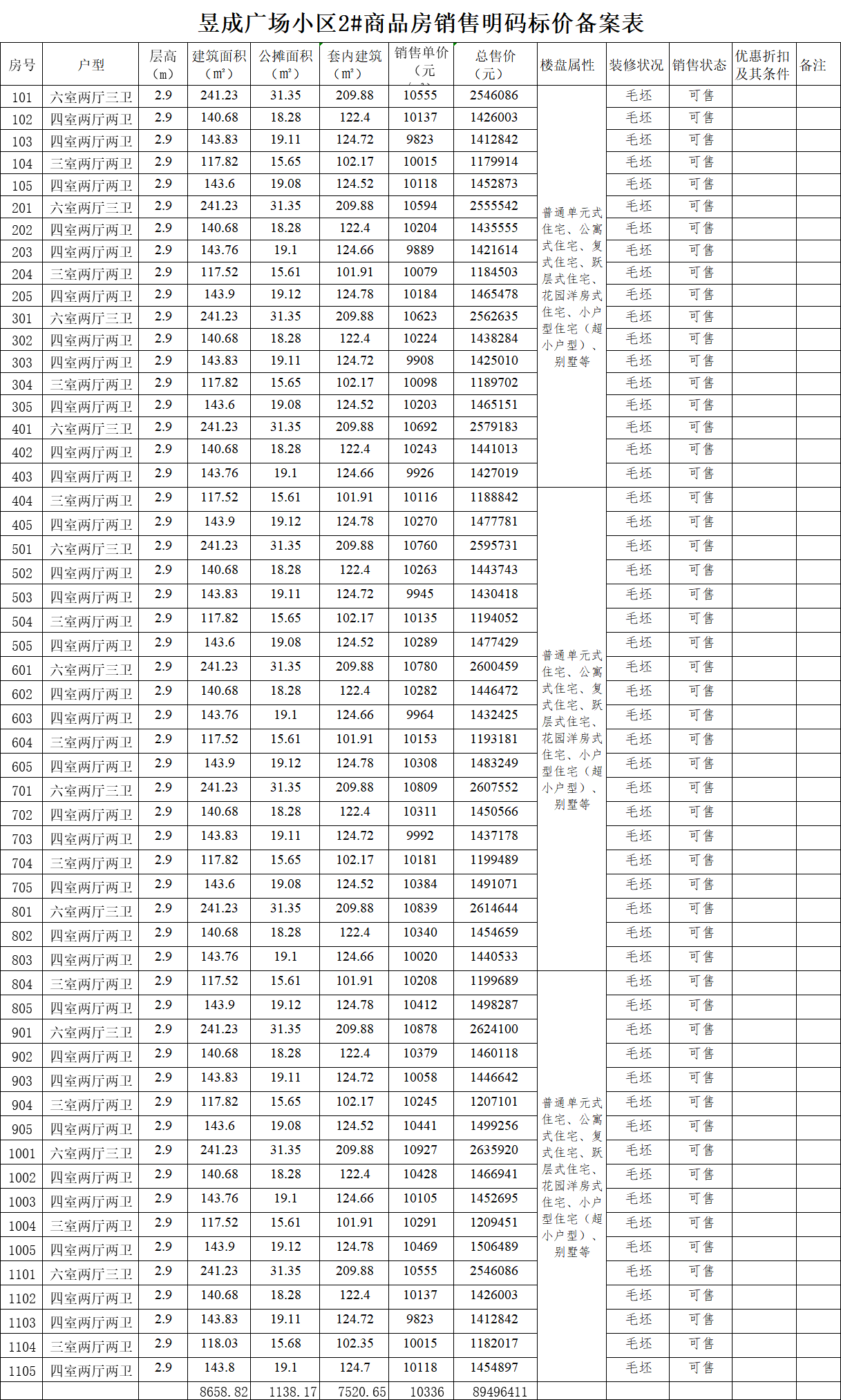 1月16日,阜阳市发展和改革委员会(阜阳物价局)发布昱成清河壹号1#、2#、3#商品房明码标价备案,此次共备案348套住宅房源,备案均价约9600元/平方米