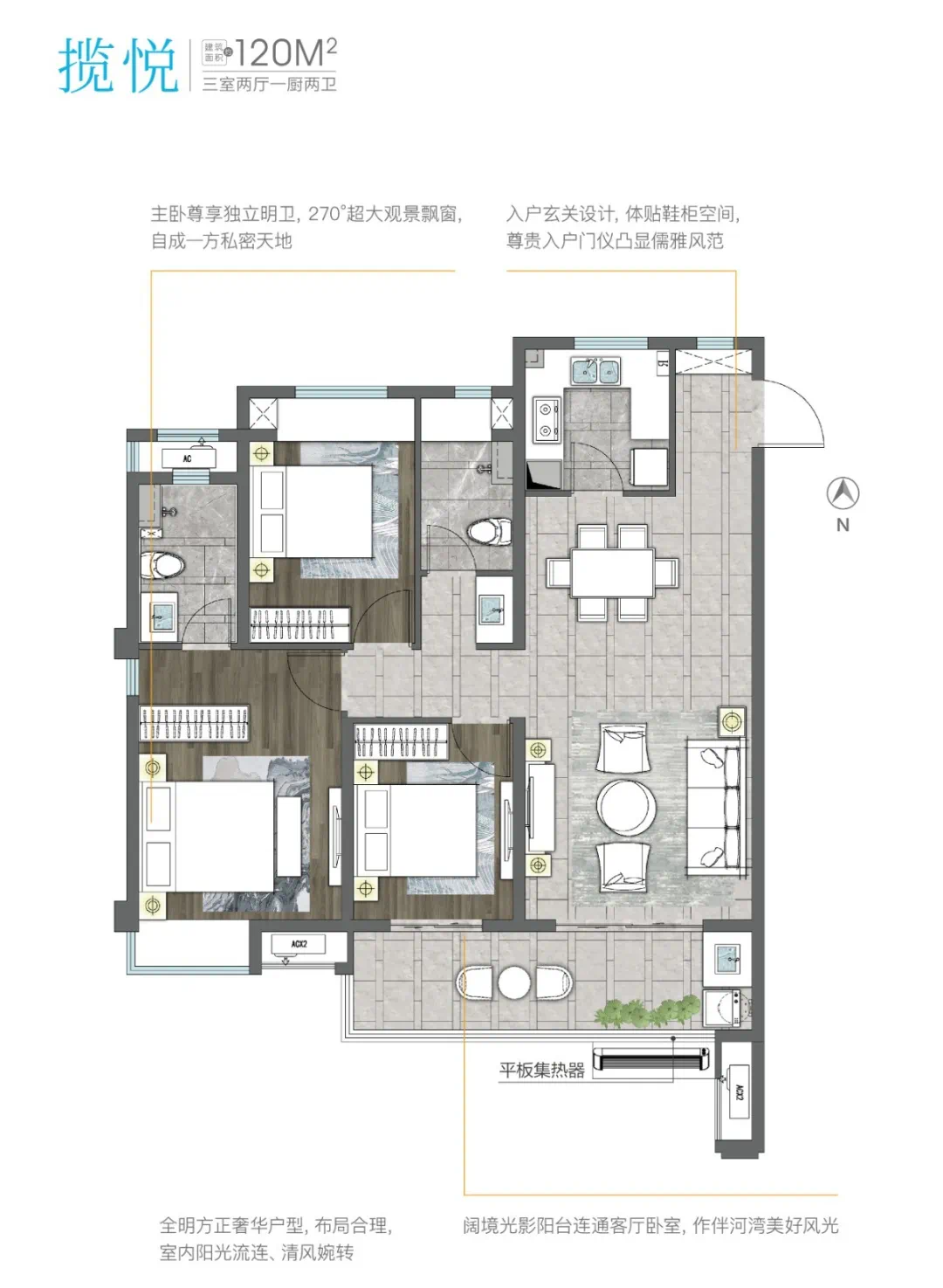 华润阜阳中心以南低北高的建筑布局,打造健康舒适的楼间距,保证不同楼栋间的采光、通风、观赏河景;全生命周期户型,南北通透,任阳光清风自在穿梭,宽境阳台,霸屏双清湾风景,生活与自然相伴。