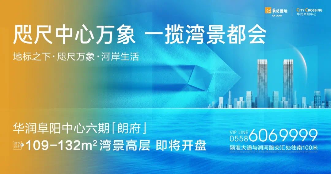 华润置地阜阳中心美好双节焕房季焕房·焕新·焕生活八重好礼 大有甜头华润置地阜阳中心朗府建面约109~132㎡湾景高层 开盘在即240米双子塔地标 50-350㎡与阜阳共向上,预见未来之光