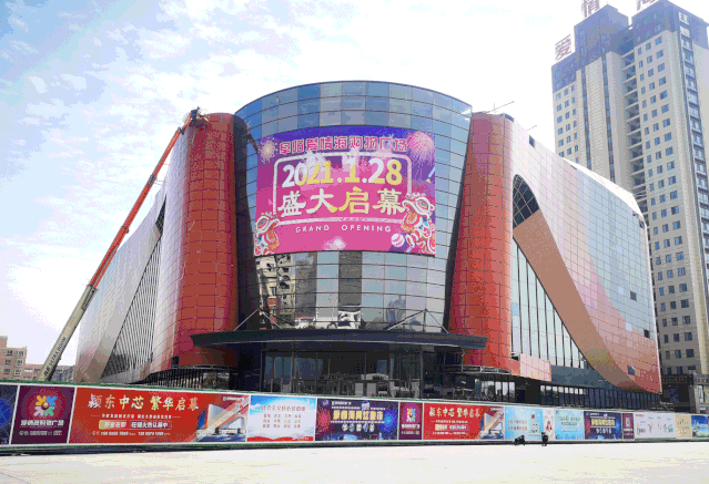 方圆荟·世纪金源购物中心位于颍东区东盛路与众兴路交汇处,项目拥有18.7万㎡的超大体量,从外观看已经明显看出是个已经建成的大型综合题,另外外面已经陆续挂上了广告画面。