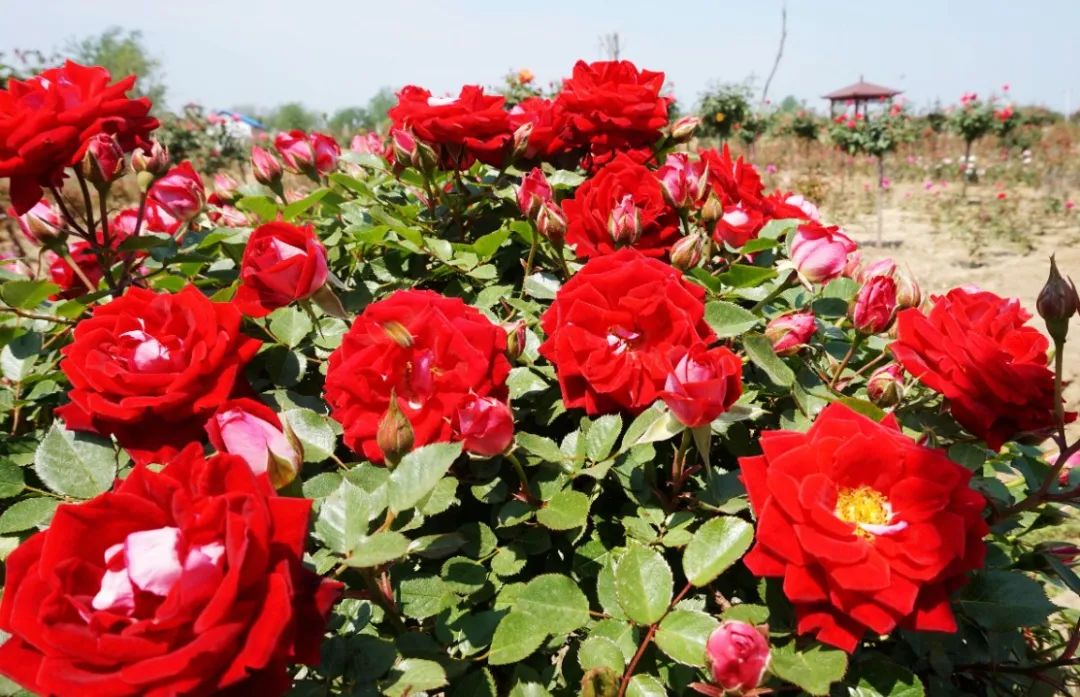 朵朵花开红似火,片片绿叶映彩霞。明佳花木月季产业园位于安徽省阜阳市颍东区老庙镇明佳花木有限公司月季产业园种植基地内,园内有100多万株月季,美不胜收。