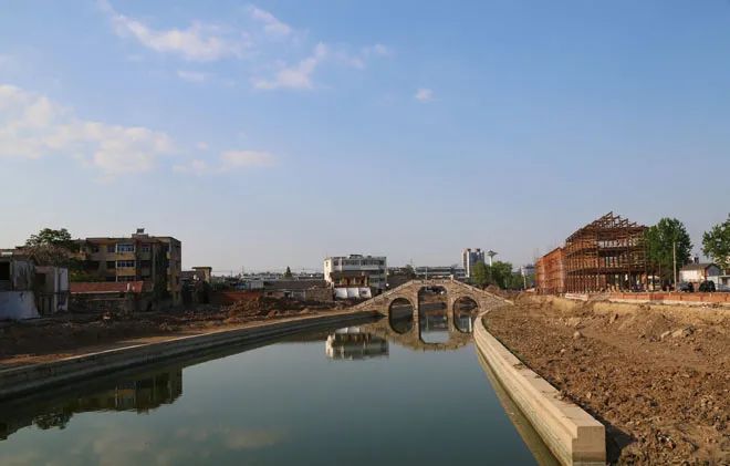 颍上县外城河改造二期工程,建设项目包括街面房、四合院、六角亭、牌坊、人行老石桥、古式长廊、水榭、戏台、古树池、亲水平台、临水码头、绿化工程等。